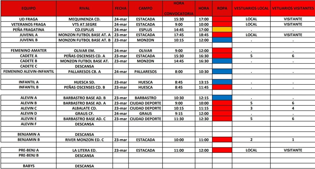 UncategorizedHorarios de competición fútbol base marzo 20, 2019 Unión Deportiva Fraga Calendario de competición fútbol base, para los días 23 y 24 de marzo: Comparte esto: Haz clic para compartir en X (Se abre en una ventana nueva) X Haz clic para compartir en Facebook (Se abre en una ventana nueva) Facebook Me gusta Cargando... Relacionado