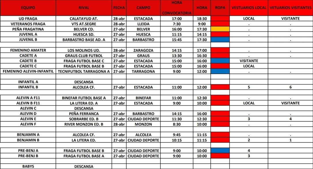 UncategorizedHorarios fútbol base abril 24, 2019abril 24, 2019 Unión Deportiva Fraga Calendario de competición para los días 27 y 28 de abril: Comparte esto: Haz clic para compartir en X (Se abre en una ventana nueva) X Haz clic para compartir en Facebook (Se abre en una ventana nueva) Facebook Me gusta Cargando... Relacionado