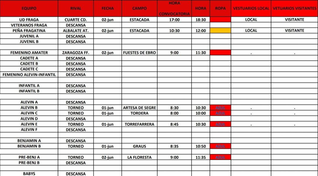 UncategorizedHorarios Fútbol Base mayo 29, 2019 Unión Deportiva Fraga Calendario de comperición para los días 1 y 2 de junio Comparte esto: Haz clic para compartir en X (Se abre en una ventana nueva) X Haz clic para compartir en Facebook (Se abre en una ventana nueva) Facebook Me gusta Cargando... Relacionado