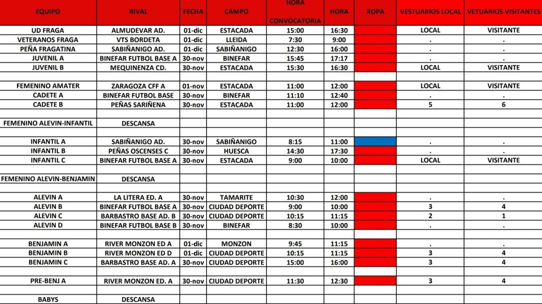 UncategorizedHorarios Fútbol Base noviembre 27, 2019noviembre 27, 2019 Unión Deportiva Fraga Calendario de competición, para los días 30 de noviembre y 1 de diciembre: Comparte esto: Haz clic para compartir en X (Se abre en una ventana nueva) X Haz clic para compartir en Facebook (Se abre en una ventana nueva) Facebook Me gusta Cargando... Relacionado