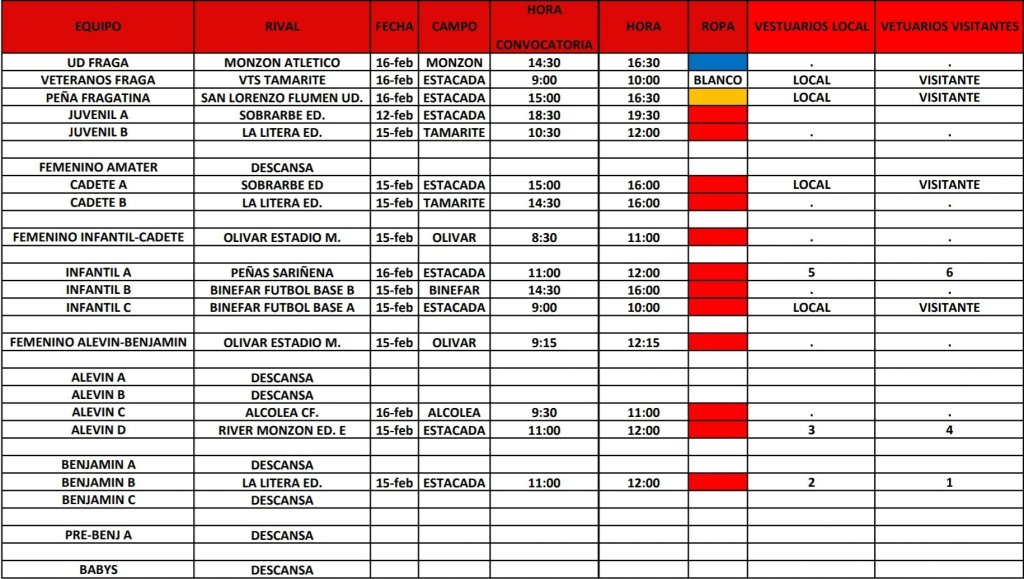 UncategorizedHorarios fútbol base febrero 12, 2020febrero 12, 2020 Unión Deportiva Fraga Calendario de competición, para los días 15 y 16 de febrero Comparte esto: Haz clic para compartir en X (Se abre en una ventana nueva) X Haz clic para compartir en Facebook (Se abre en una ventana nueva) Facebook Me gusta Cargando... Relacionado