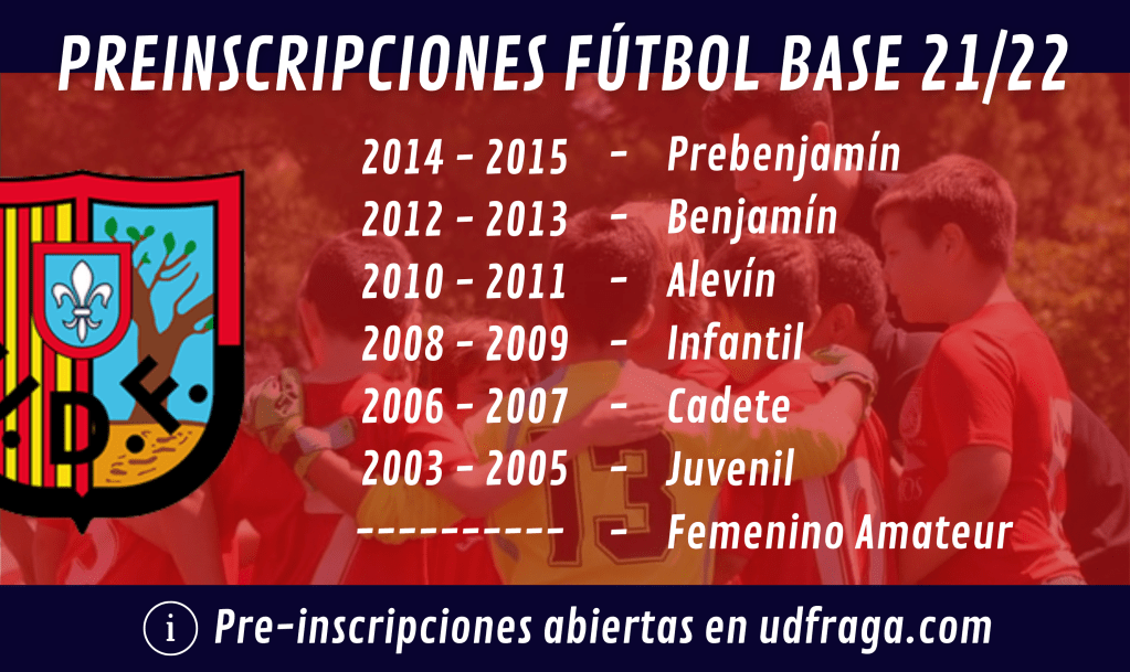 La Unión Deportiva Fraga abre el plazo para la preinscripción al Fútbol Base, para la temporada 21/22.